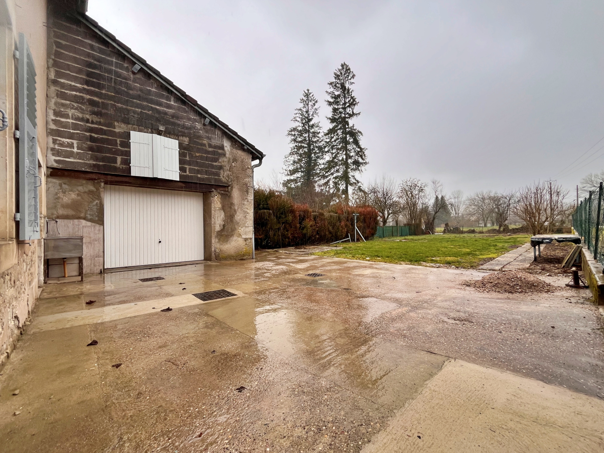 Cette maison offre également une buanderie avec un point d'eau, un garage pour une voiture, un garage pour du rangement et une cave.