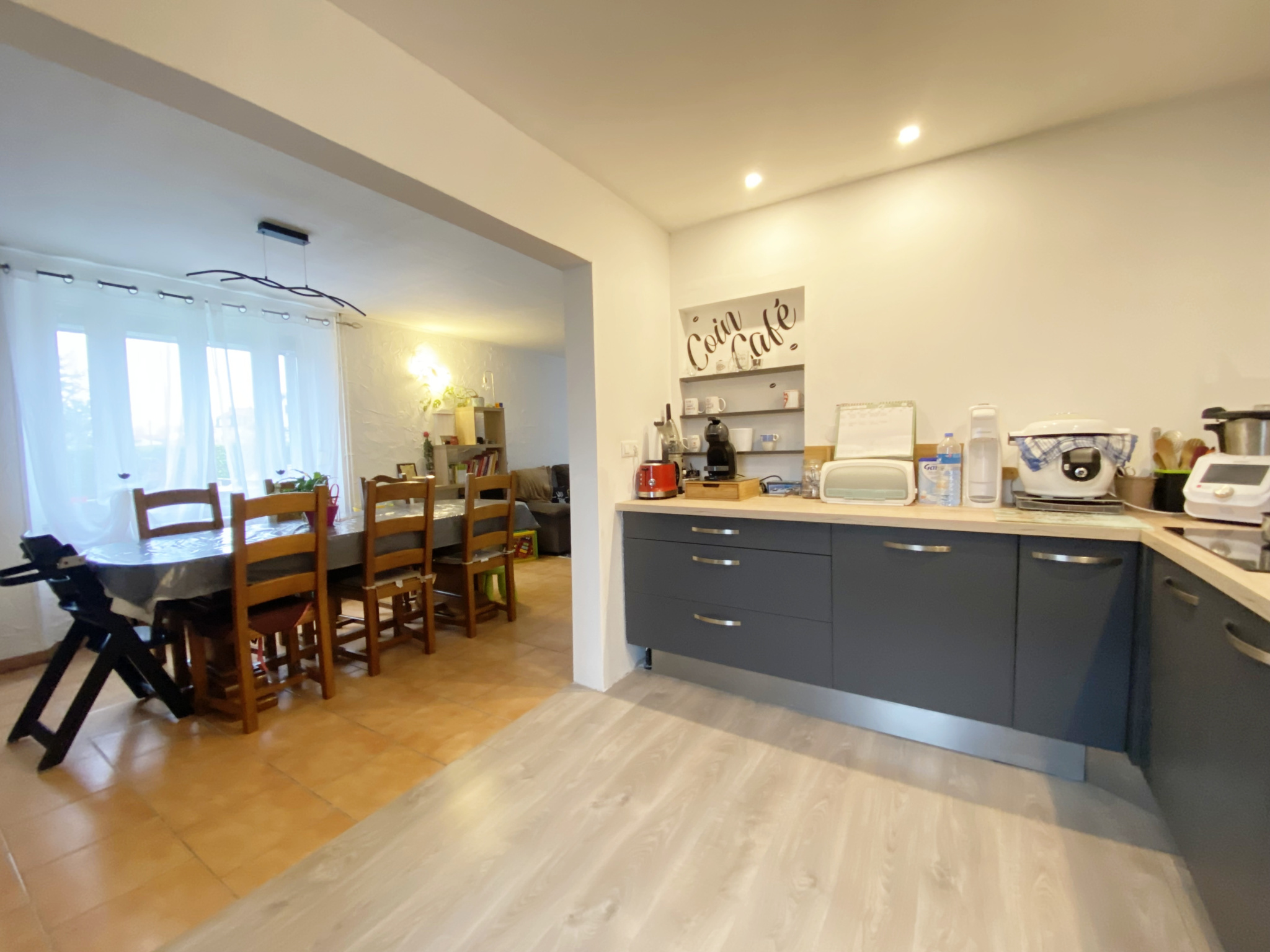 En exclusivité JDV GESTION, elle se compose d'une entrée, une jolie cuisine ouverte sur salon/séjour et accès terrain. WC séparés.