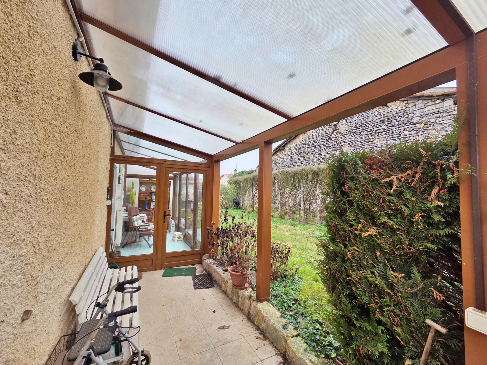 Vous apprécierez la véranda chauffée donnant sur le jardin clos et sans vis à vis, un espace chaufferie/atelier avec un second WC et un grand garage avec grenier.