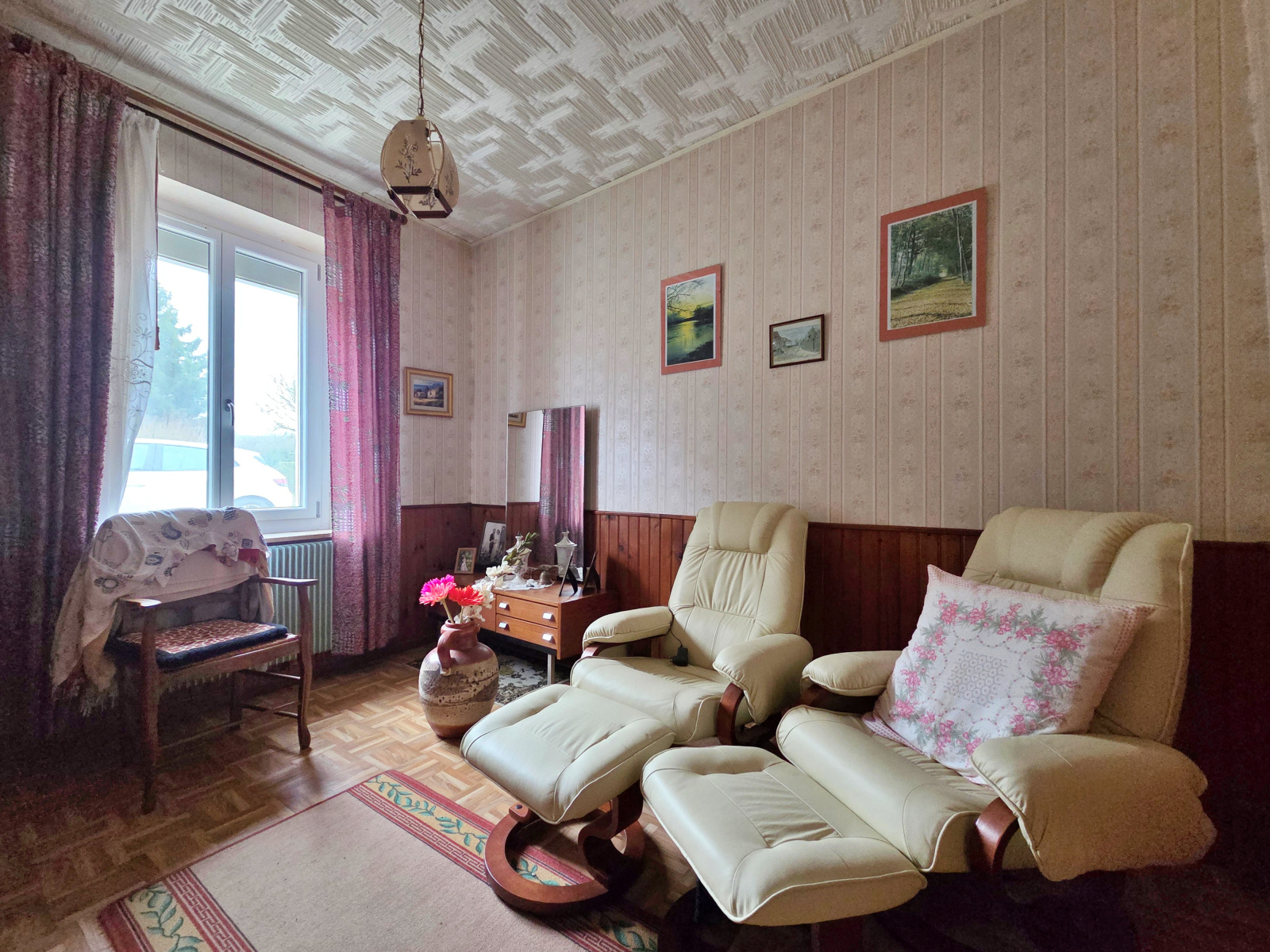 Chauffage central au fuel, fenêtres double vitrage PVC et volets roulants éléctriques.