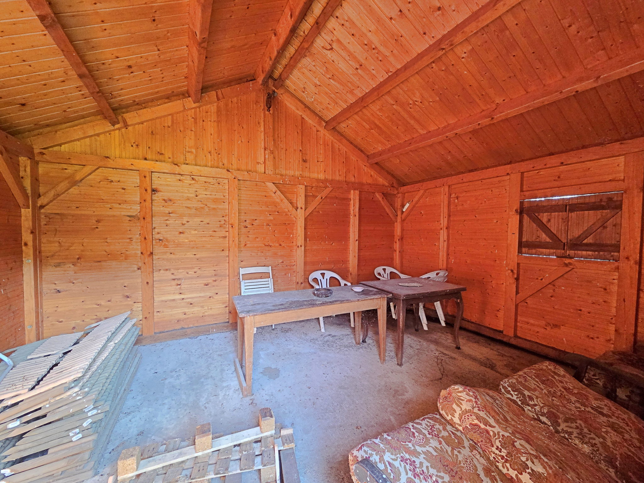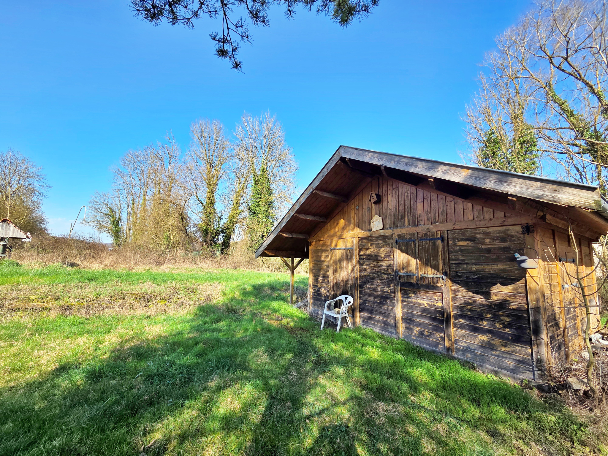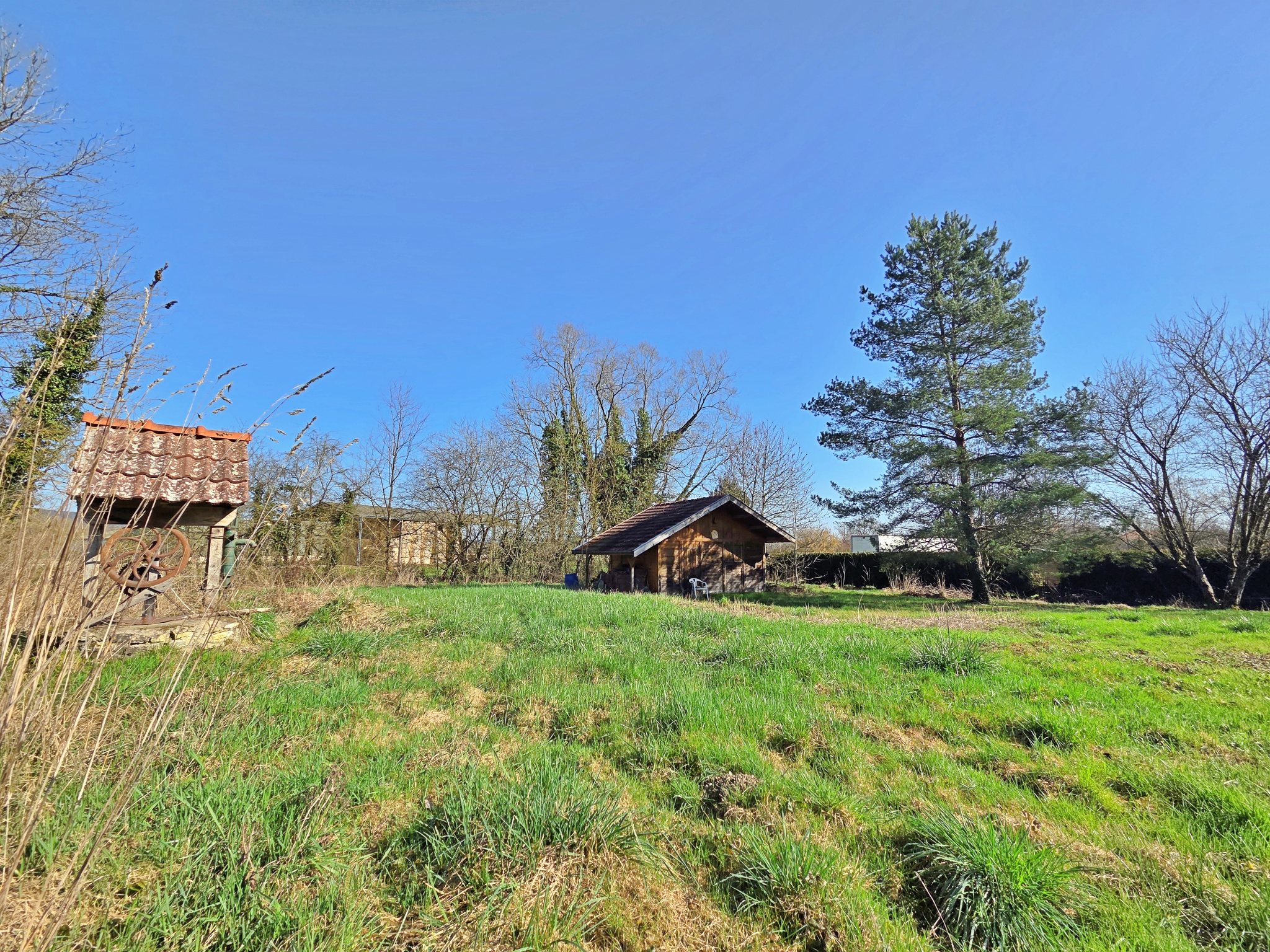 Vous profiterez de 1750m² bien exposés avec un chalet bois en bon état et dalle béton, facilement aménageable.